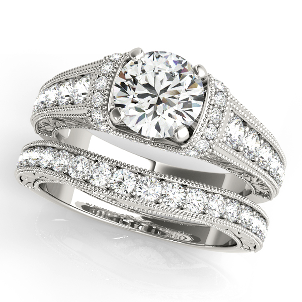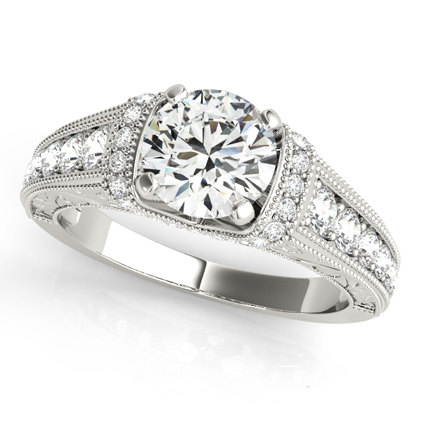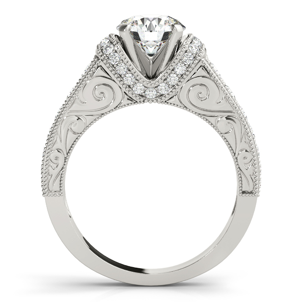 14k White Gold Engagement Ring with 32 – .005PT Round & 2 – .01PT Round & 2 – .0175PT Round & 2 – .025PT Round & 2 – .03PT Round & 2 – .04PT Round Stones, equal to 3/8 carats total weight. This ring has an optional matching Wedding Band. Can be customized to fit any stone and in any material. Please contact Ronelli Corp for custom orders and modification information, as pricing may vary.