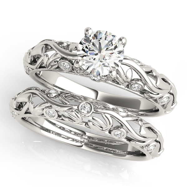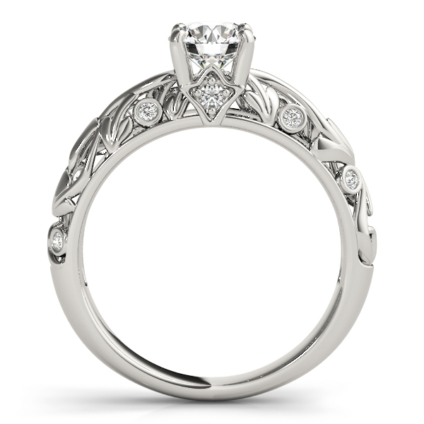 14k White Gold Engagement Ring with 1 – .6PT Round & 8 – .0075PT Round & 2 – .01PT Round Stones, equal to 5/8 carats total weight. This ring has an optional matching Wedding Band. Can be customized to fit any stone and in any material. Please contact Ronelli Corp for custom orders and modification information, as pricing may vary.