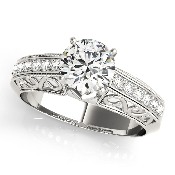 14k White Gold Engagement Ring with 12 – .01PT Round Stones, equal to 1/8 carats total weight. Can be customized to fit any stone and in any material. Please contact Ronelli Corp for custom orders and modification information, as pricing may vary.