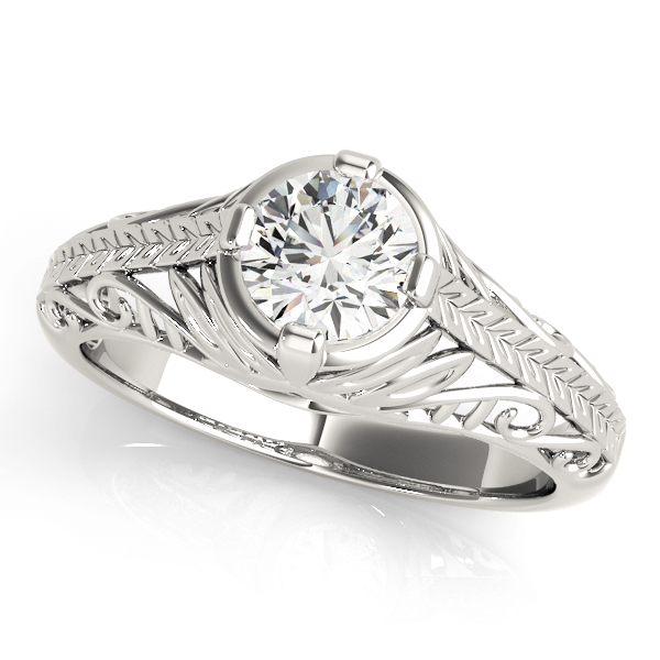 14k White Gold Engagement Ring with 1 – .5PT Round Stone, equal to 1/2 carats total weight. Can be customized to fit any stone and in any material. Please contact Ronelli Corp for custom orders and modification information, as pricing may vary.