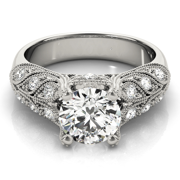 14k White Gold Engagement Ring with 1 – 1.5PT Round & 4 – .02PT Round & 4 – .015PT Round & 6 – .01PT Round Stones, equal to 1 3/4 carats total weight. Can be customized to fit any stone and in any material. Please contact Ronelli Corp for custom orders and modification information, as pricing may vary.