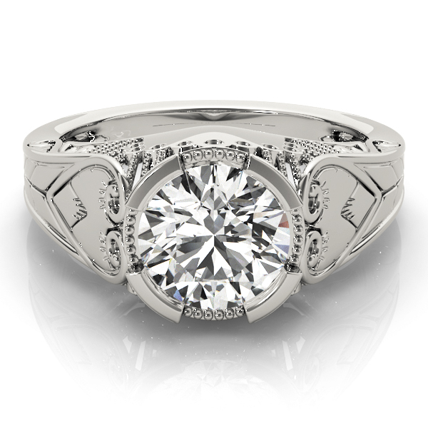 14k White Gold Engagement Ring with 1 – 1.5PT Round Stone, equal to 1 1/2 carats total weight. Can be customized to fit any stone and in any material. Please contact Ronelli Corp for custom orders and modification information, as pricing may vary.