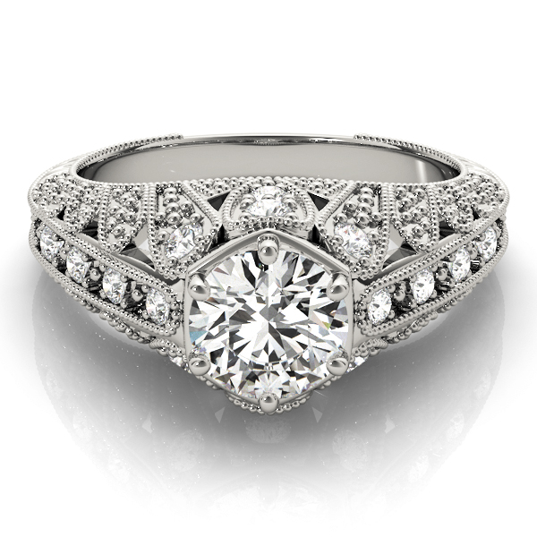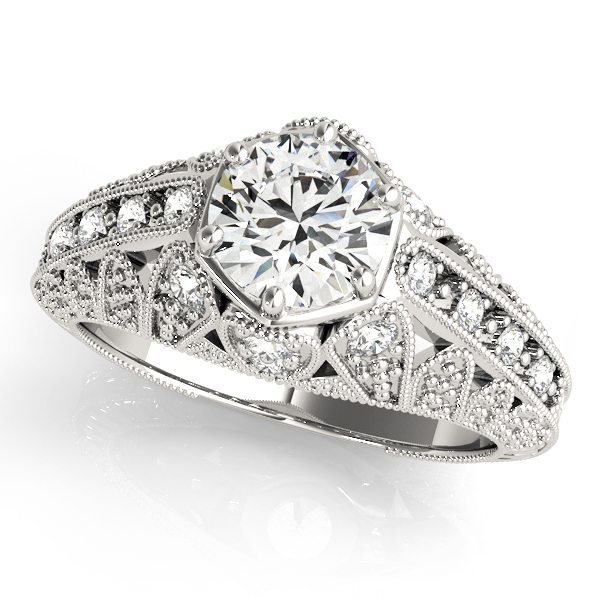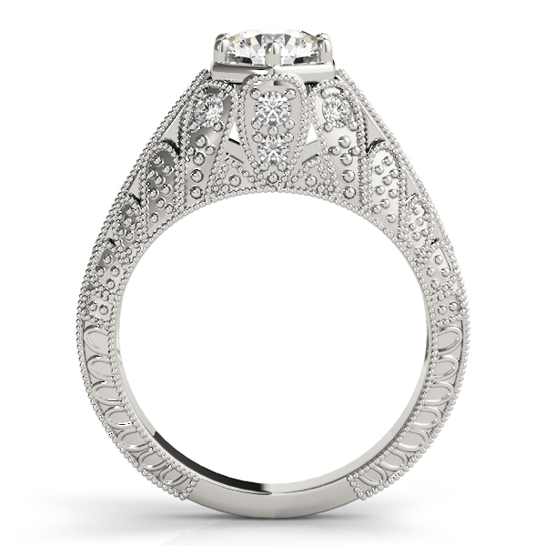 14k White Gold Engagement Ring with 1 – .75PT Round & 16 – .01PT Round Stones, equal to 7/8 carats total weight. Can be customized to fit any stone and in any material. Please contact Ronelli Corp for custom orders and modification information, as pricing may vary.
