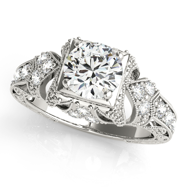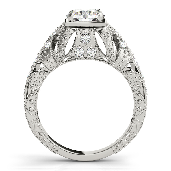 14k White Gold Engagement Ring with 1 – 1.PT Round & 20 – .01PT Round Stones, equal to 1 1/5 carats total weight. This ring has an optional matching Wedding Band. Can be customized to fit any stone and in any material. Please contact Ronelli Corp for custom orders and modification information, as pricing may vary.
