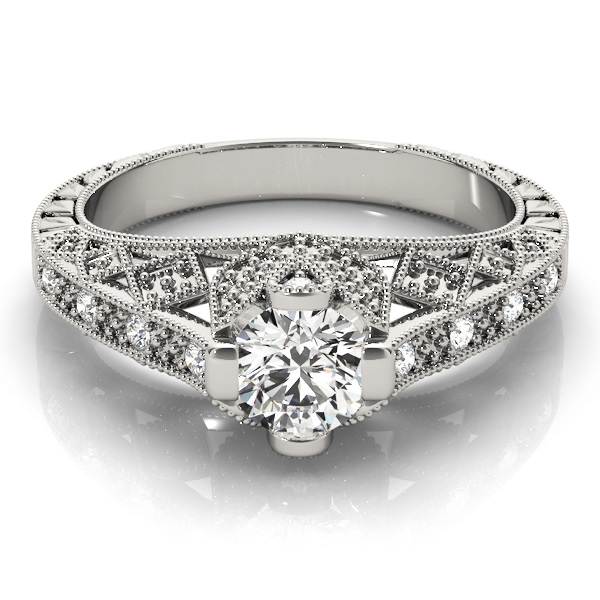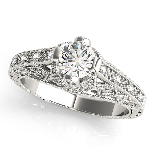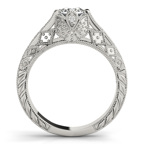 14k White Gold Engagement Ring with 1 – .5PT Round & 10 – .01PT Round Stones, equal to 5/8 carats total weight. Can be customized to fit any stone and in any material. Please contact Ronelli Corp for custom orders and modification information, as pricing may vary.