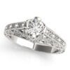 14k White Gold Engagement Ring with 1 – .5PT Round & 12 – .01PT Round Stones, equal to 5/8 carats total weight. This ring has an optional matching Wedding Band. Can be customized to fit any stone and in any material. Please contact Ronelli Corp for custom orders and modification information, as pricing may vary.