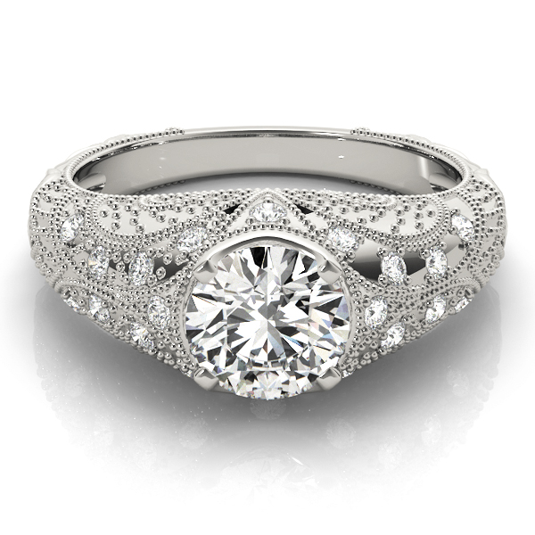 14k White Gold Engagement Ring with 1 – 1.PT Round & 20 – .01PT Round Stones, equal to 1 1/5 carats total weight. Can be customized to fit any stone and in any material. Please contact Ronelli Corp for custom orders and modification information, as pricing may vary.