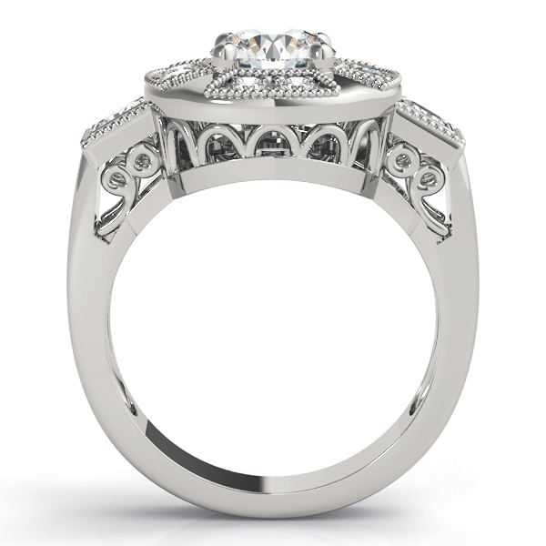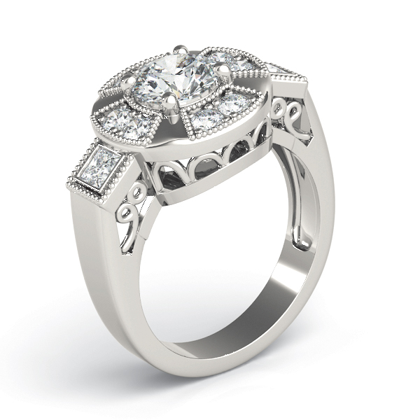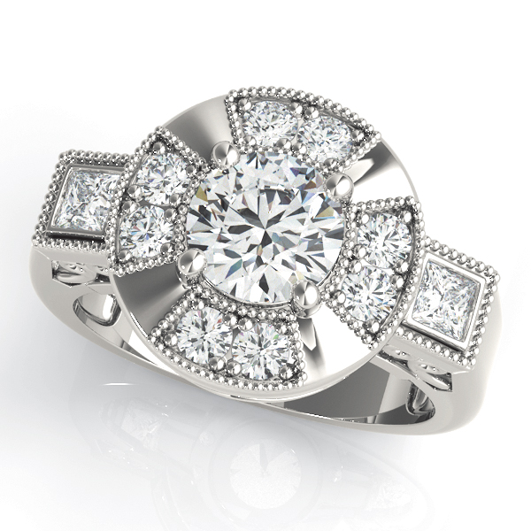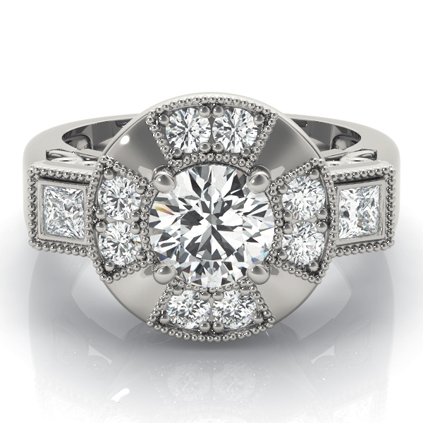 14k White Gold Engagement Ring with 1 – 1.PT Round & 8 – .025PT Round & 2 – 2.5×2.5 Square Stones, equal to 1 3/8 carats total weight. Can be customized to fit any stone and in any material. Please contact Ronelli Corp for custom orders and modification information, as pricing may vary.