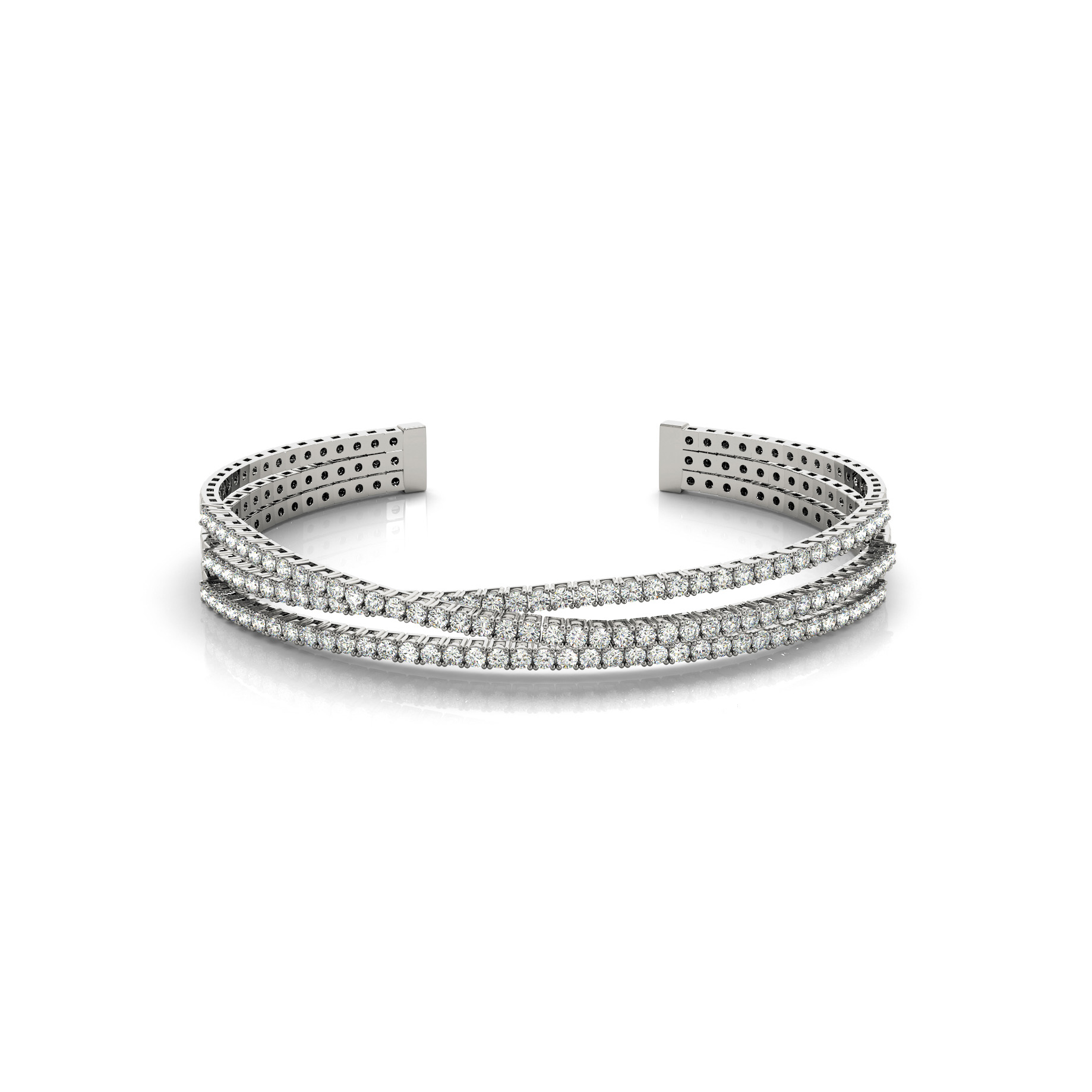 14k White Gold Bracelet with 115 – .03PT Round Stones, equal to 3 1/2 carats total weight. Can be customized to fit any stone and in any material. Please contact Ronelli Corp for custom orders and modification information, as pricing may vary.