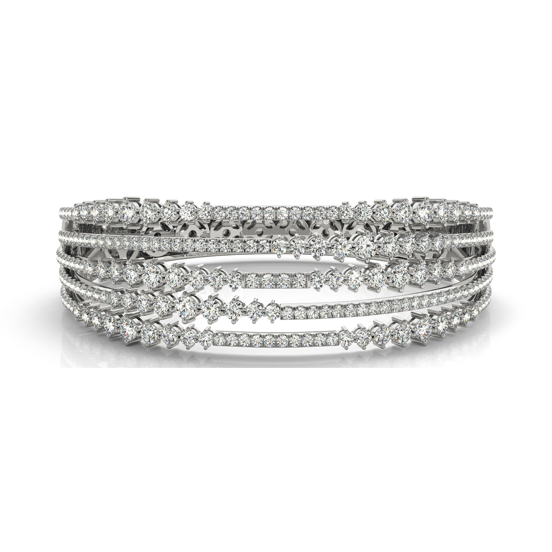 14k White Gold Bracelet with 184 – .0075PT Round & 16 – .01PT Round & 16 – .02PT Round & 16 – .05PT Round & 16 – .1PT Round & 8 – .15PT Round Stones, equal to 5 1/2 carats total weight. Can be customized to fit any stone and in any material. Please contact Ronelli Corp for custom orders and modification information, as pricing may vary.
