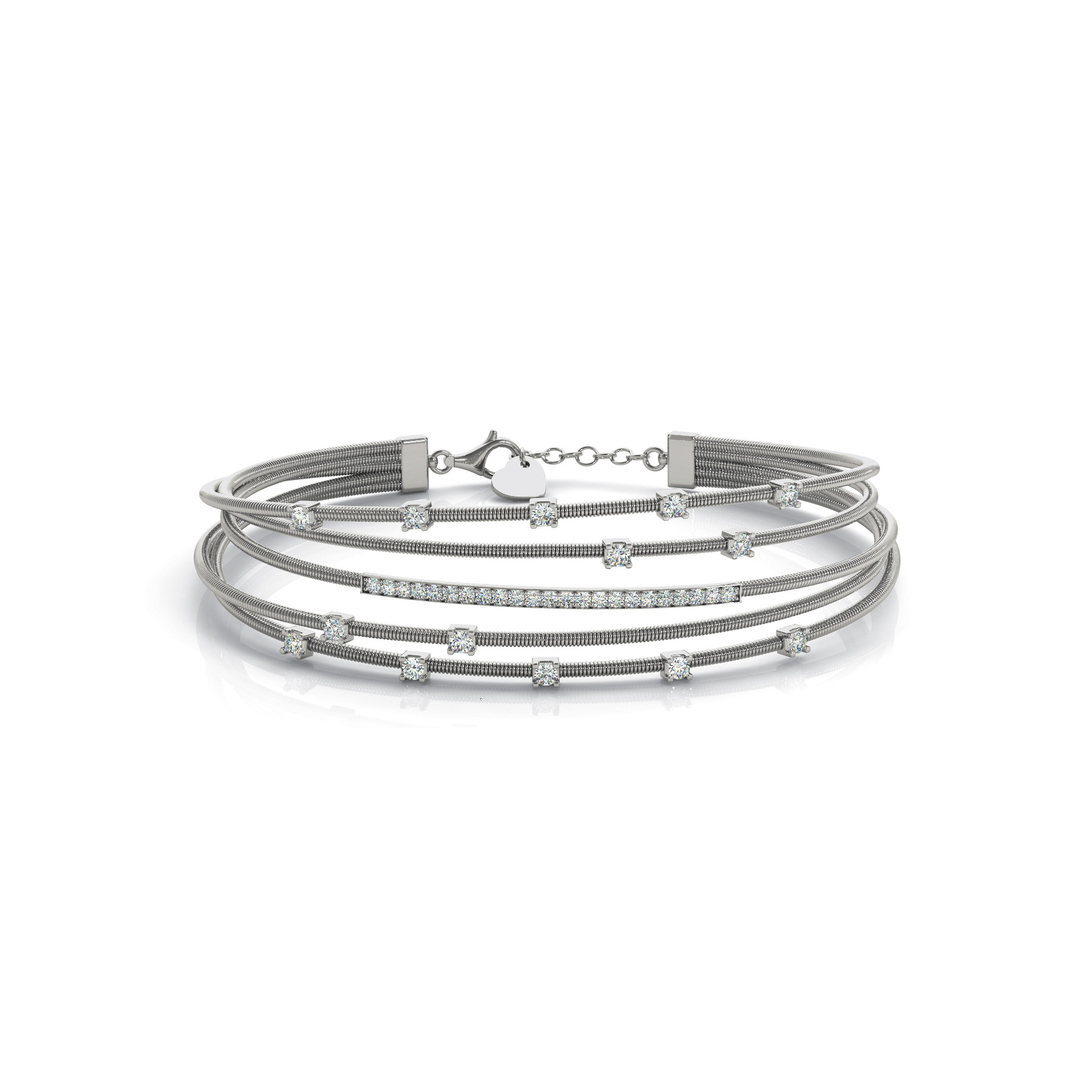 14k White Gold Bracelet with 14 – .0275PT Round & 22 – .01PT Round Stones, equal to 5/8 carats total weight. Can be customized to fit any stone and in any material. Please contact Ronelli Corp for custom orders and modification information, as pricing may vary.