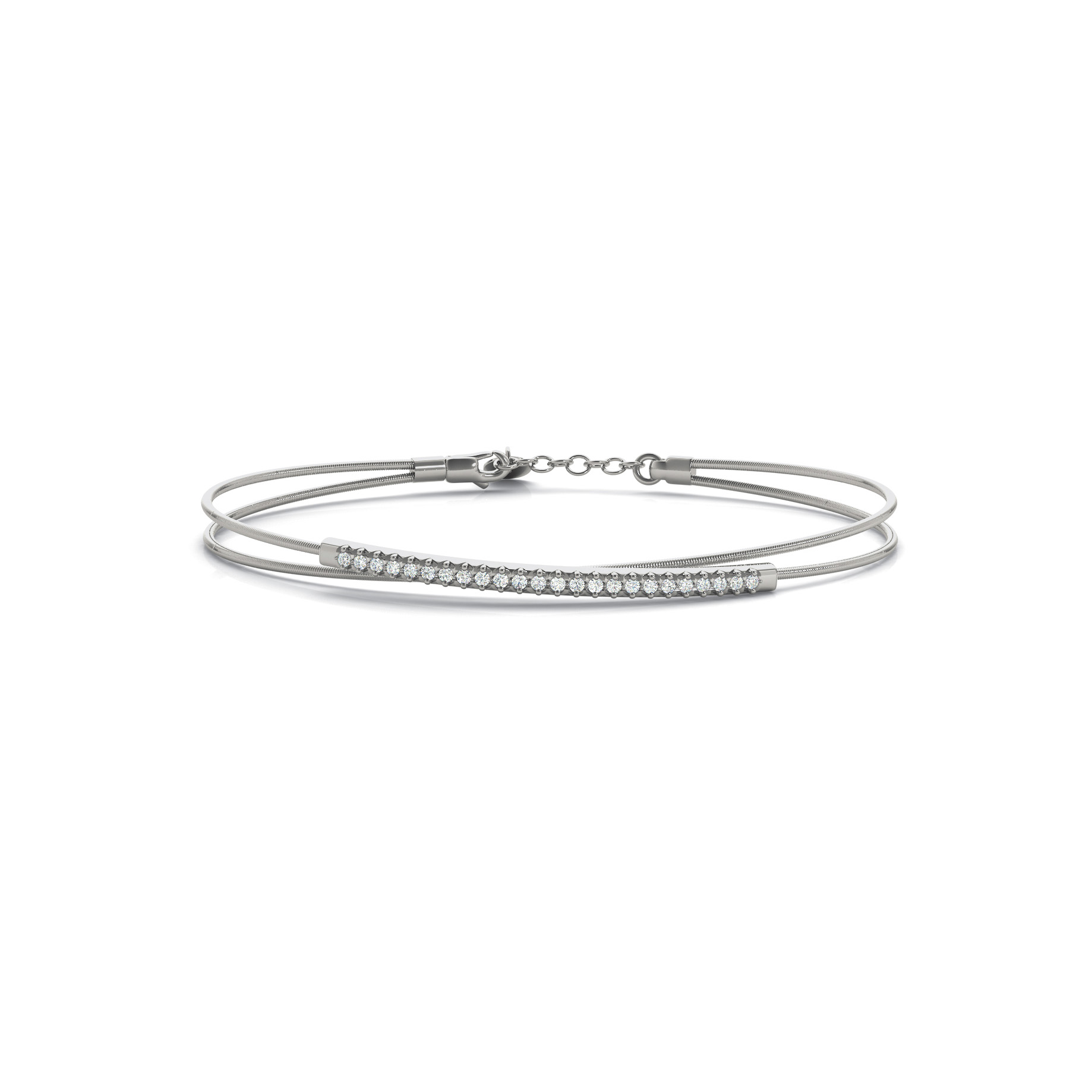 14k White Gold Bracelet with 24 – .006PT Round Stones, equal to 1/6 carats total weight. Can be customized to fit any stone and in any material. Please contact Ronelli Corp for custom orders and modification information, as pricing may vary.