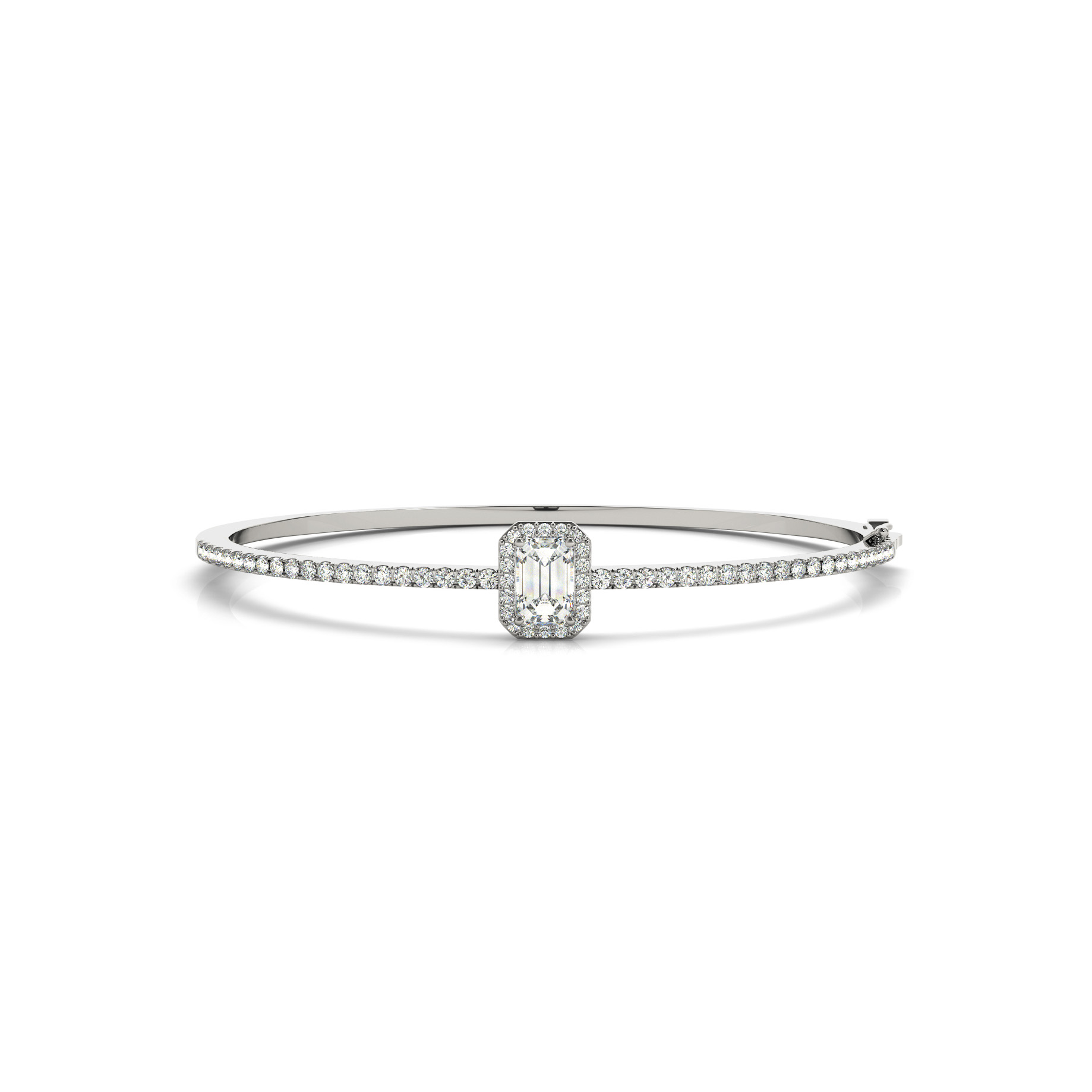 14k White Gold Bracelet with 1 – 7×5 Emerald & 38 – .025PT Round & 20 – .0075PT Round Stones, equal to 2 carats total weight. Can be customized to fit any stone and in any material. Please contact Ronelli Corp for custom orders and modification information, as pricing may vary.