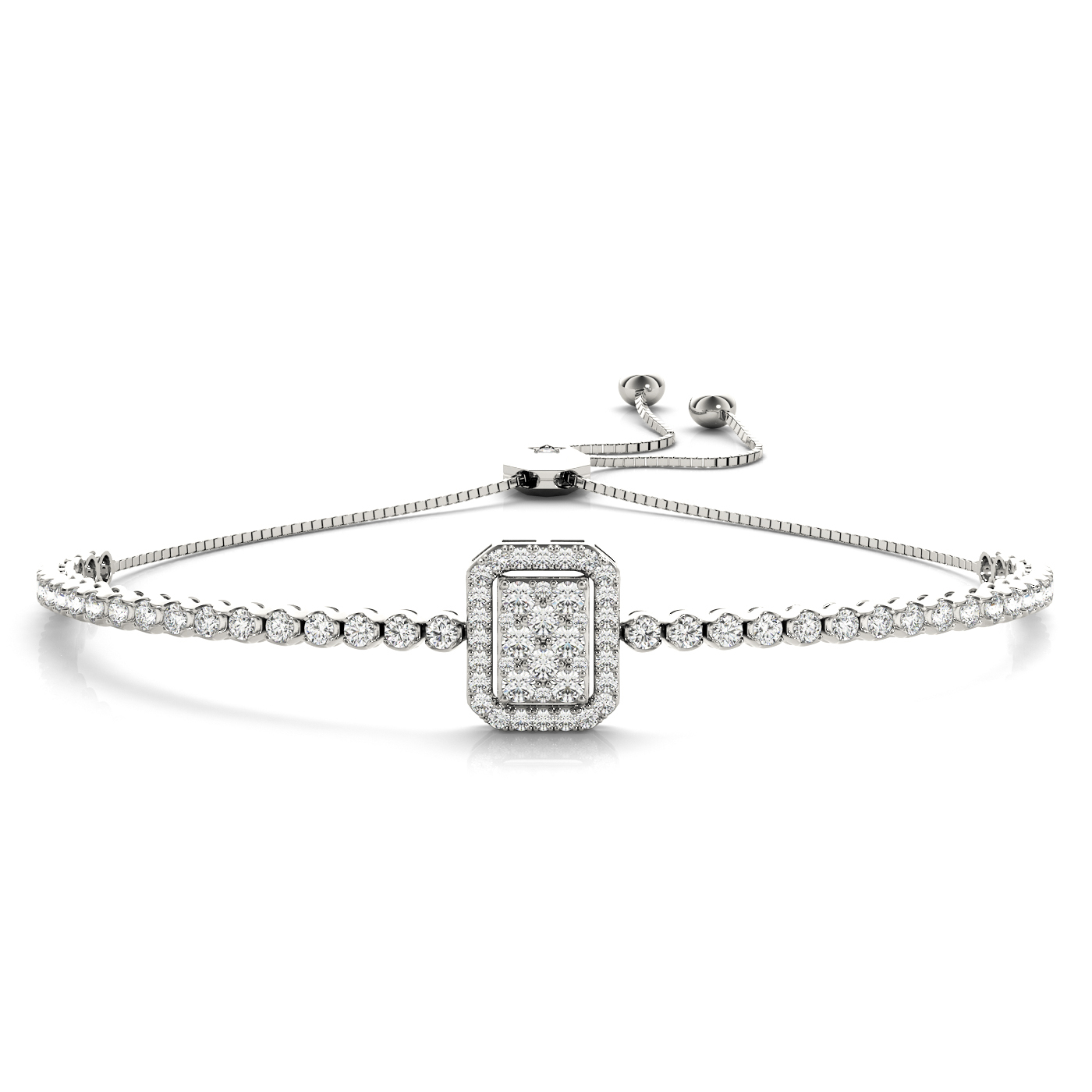 14k White Gold Bracelet with 6 – .005PT Round & 24 – .0075PT Round & 4 – .015PT Round & 40 – .03PT Round & 6 – .04PT Round Stones, equal to 1 3/4 carats total weight. Can be customized to fit any stone and in any material. Please contact Ronelli Corp for custom orders and modification information, as pricing may vary.