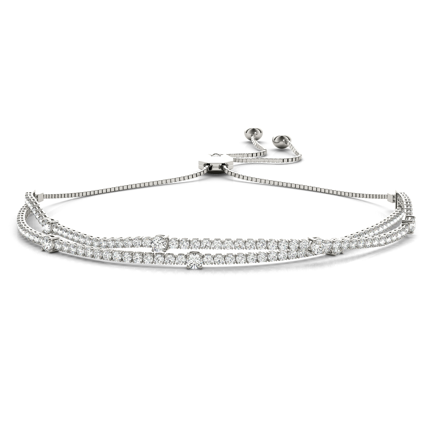 14k White Gold Bracelet with 123 – .0125PT Round & 2 – .015PT Round & 7 – .06PT Round Stones, equal to 2 carats total weight. Can be customized to fit any stone and in any material. Please contact Ronelli Corp for custom orders and modification information, as pricing may vary.