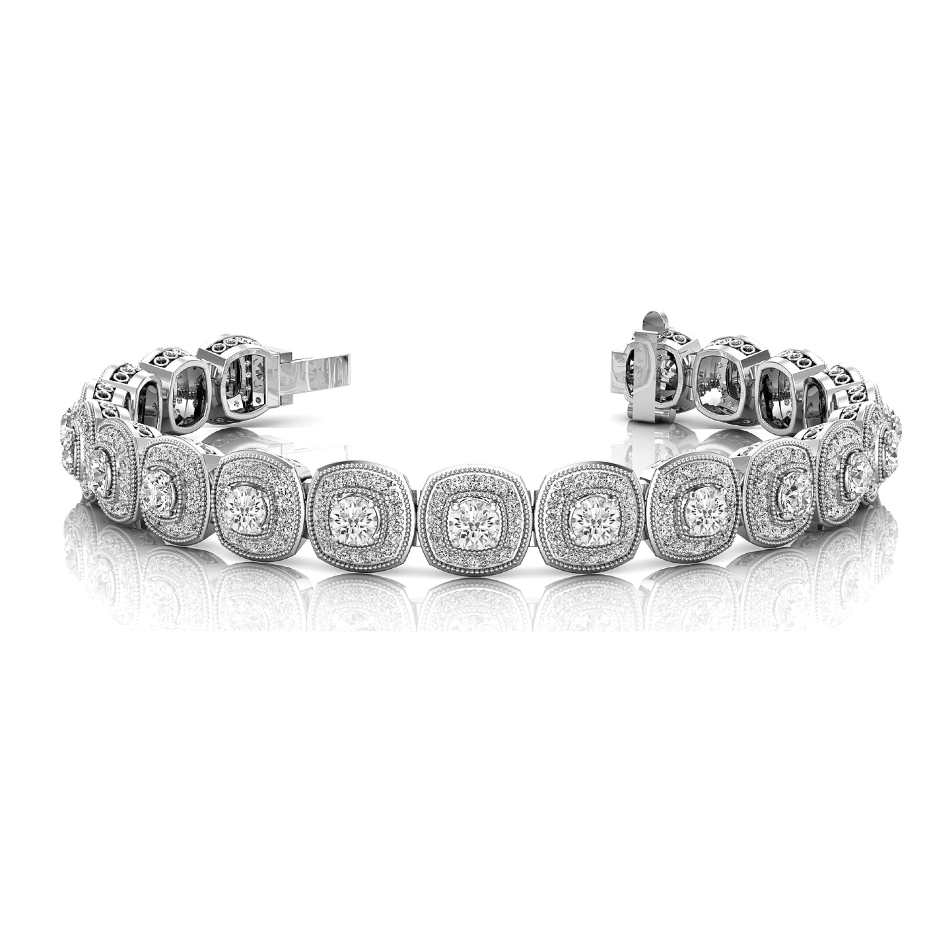 14k White Gold Bracelet with 350 – .005PT Round & 25 – .06PT Round Stones, equal to 3 1/4 carats total weight. Can be customized to fit any stone and in any material. Please contact Ronelli Corp for custom orders and modification information, as pricing may vary.