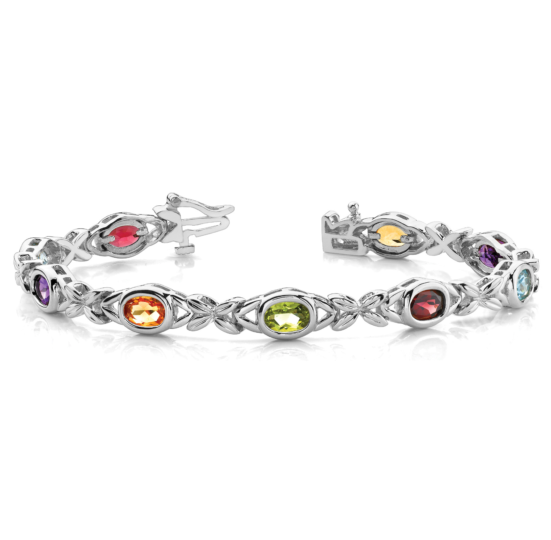 14k White Gold Bracelet with 9 – 7×5 Oval Stones. Can be customized to fit any stone and in any material. Please contact Ronelli Corp for custom orders and modification information, as pricing may vary.
