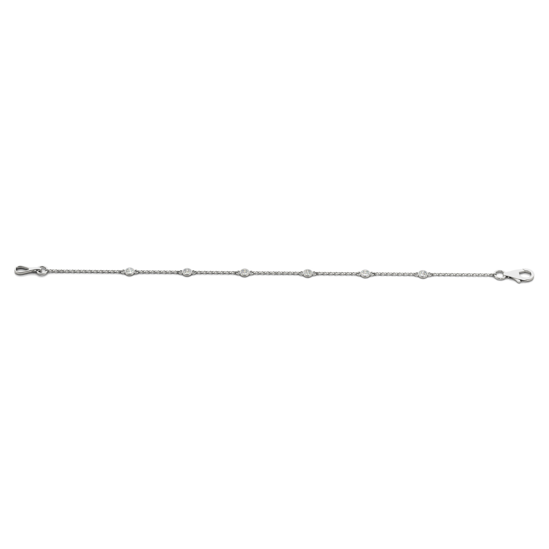 14k White Gold Bracelet with 6 – .02PT Round Stones, equal to 1/8 carats total weight. Can be customized to fit any stone and in any material. Please contact Ronelli Corp for custom orders and modification information, as pricing may vary.