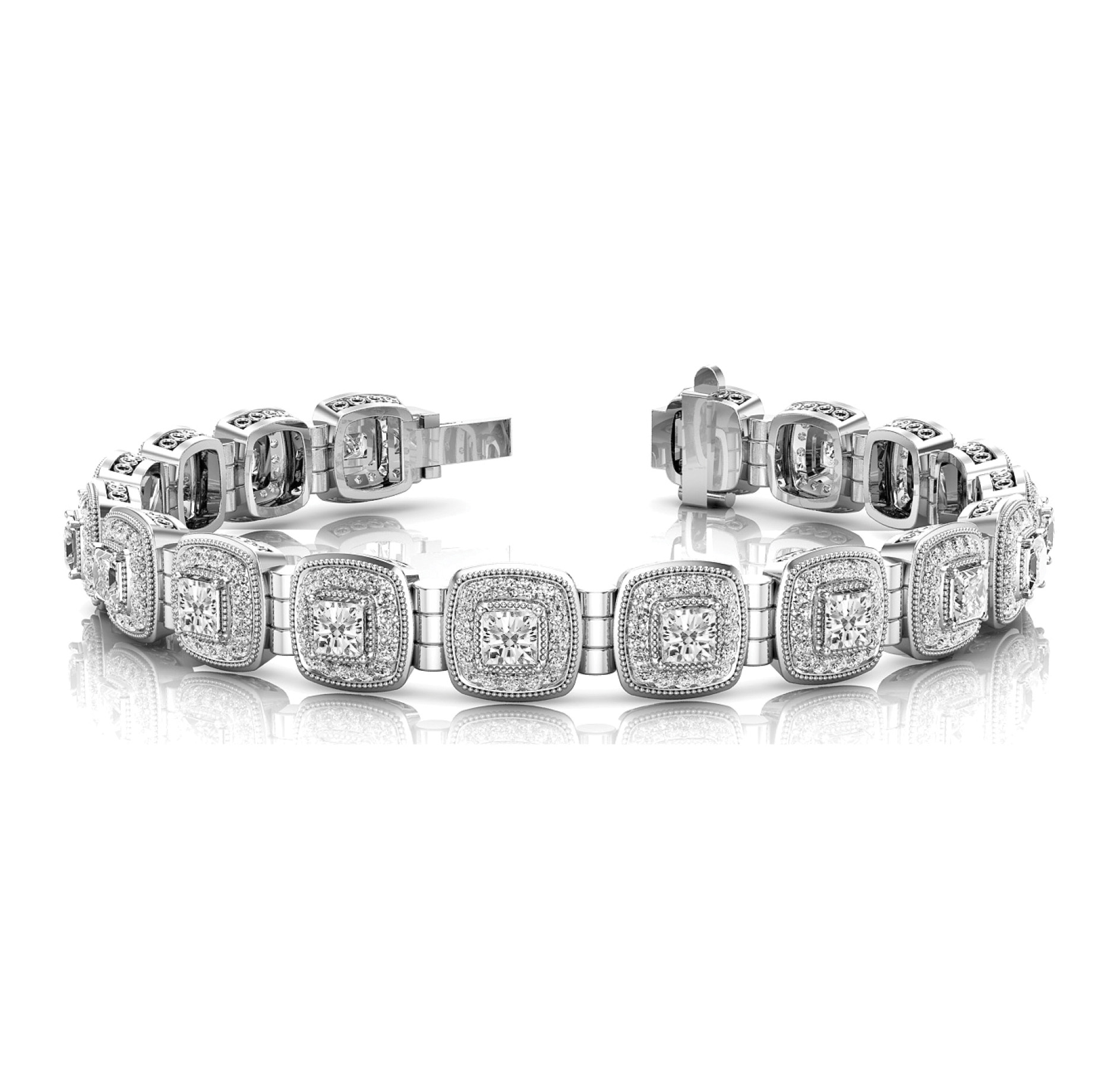 14k White Gold Bracelet with 264 – .007PT Round & 22 – 2.5×2.5 Square Stones, equal to 4 carats total weight. Can be customized to fit any stone and in any material. Please contact Ronelli Corp for custom orders and modification information, as pricing may vary.
