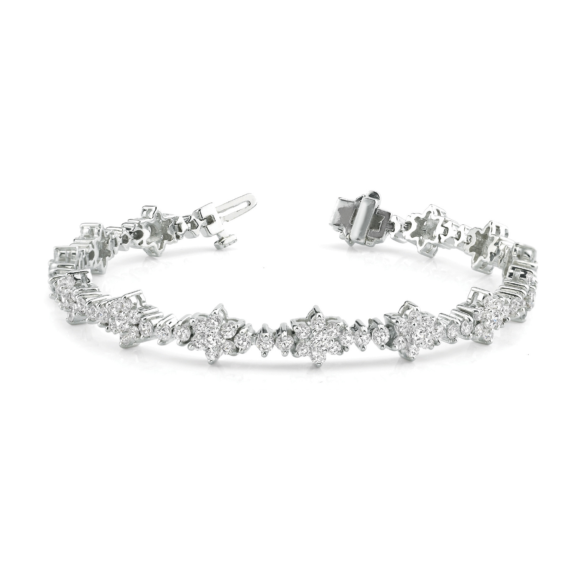 14k White Gold Bracelet with 84 – .029PT Round & 42 – .04PT Round & 14 – .07PT Round Stones, equal to 5 1/5 carats total weight. Can be customized to fit any stone and in any material. Please contact Ronelli Corp for custom orders and modification information, as pricing may vary.