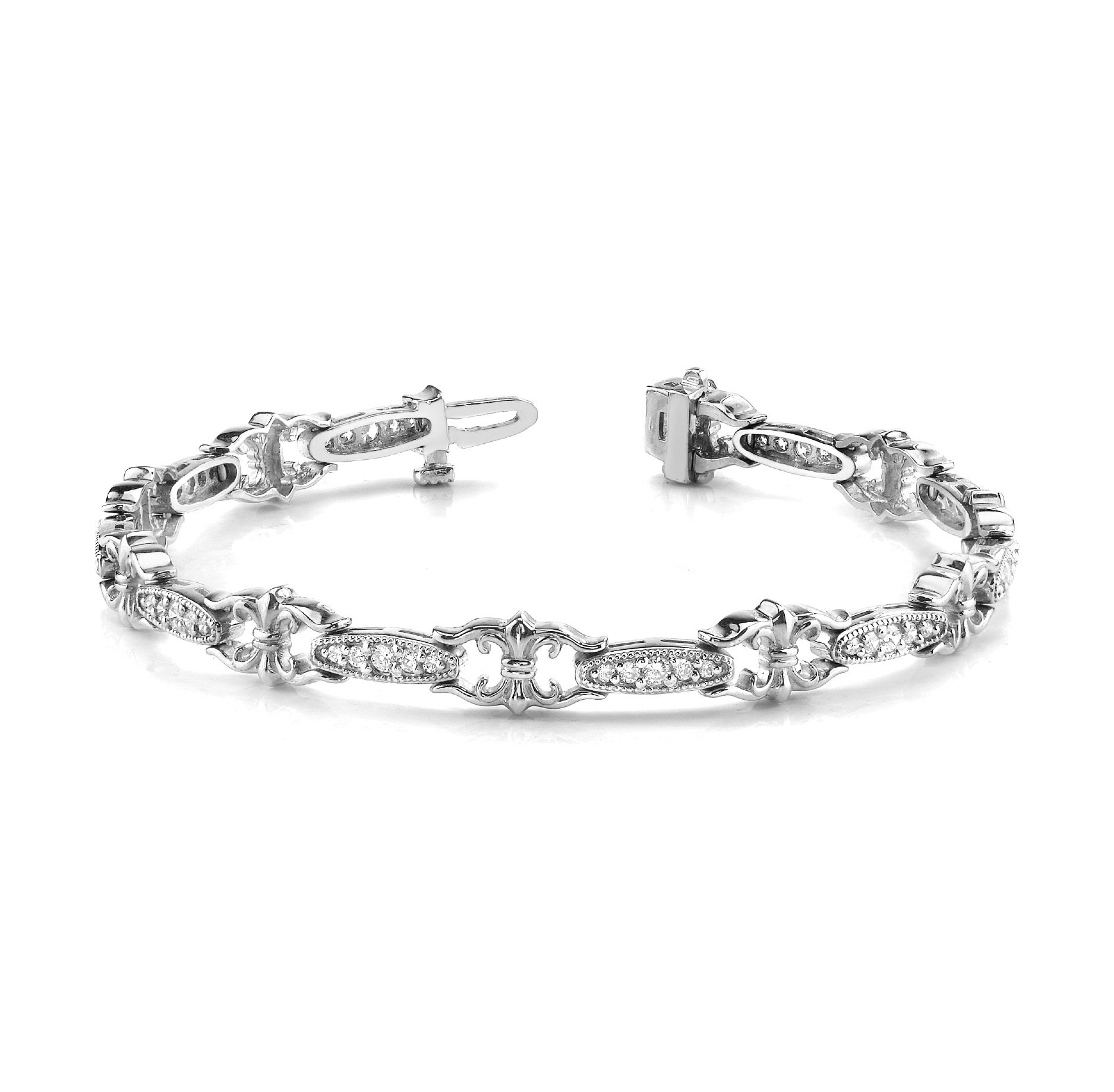14k White Gold Bracelet with 20 – .015PT Round & 20 – .02PT Round & 10 – .03PT Round Stones, equal to 1 carats total weight. Can be customized to fit any stone and in any material. Please contact Ronelli Corp for custom orders and modification information, as pricing may vary.
