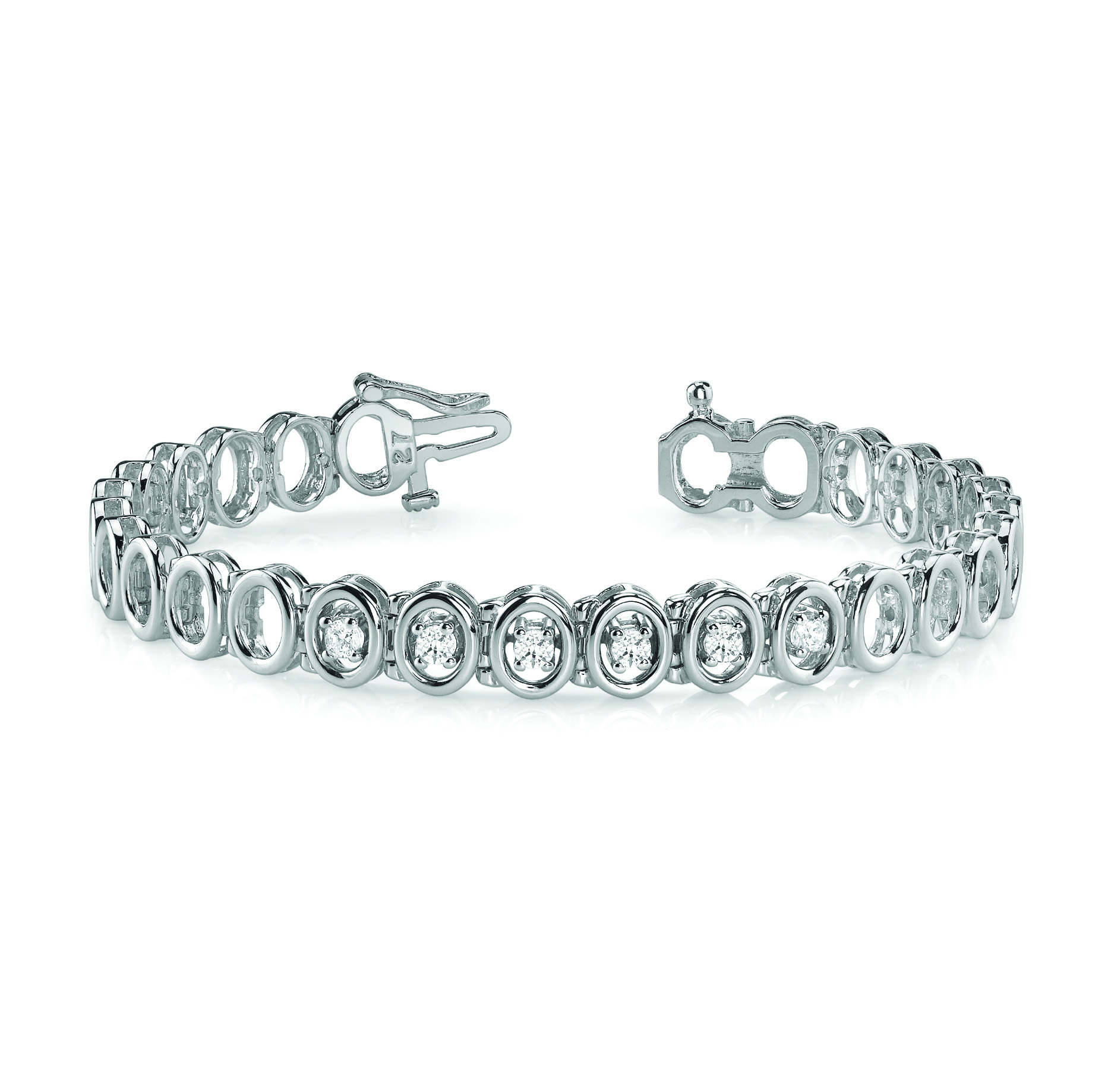 14k White Gold Bracelet with 7 – .06PT Round Stones, equal to 3/8 carats total weight. Can be customized to fit any stone and in any material. Please contact Ronelli Corp for custom orders and modification information, as pricing may vary.