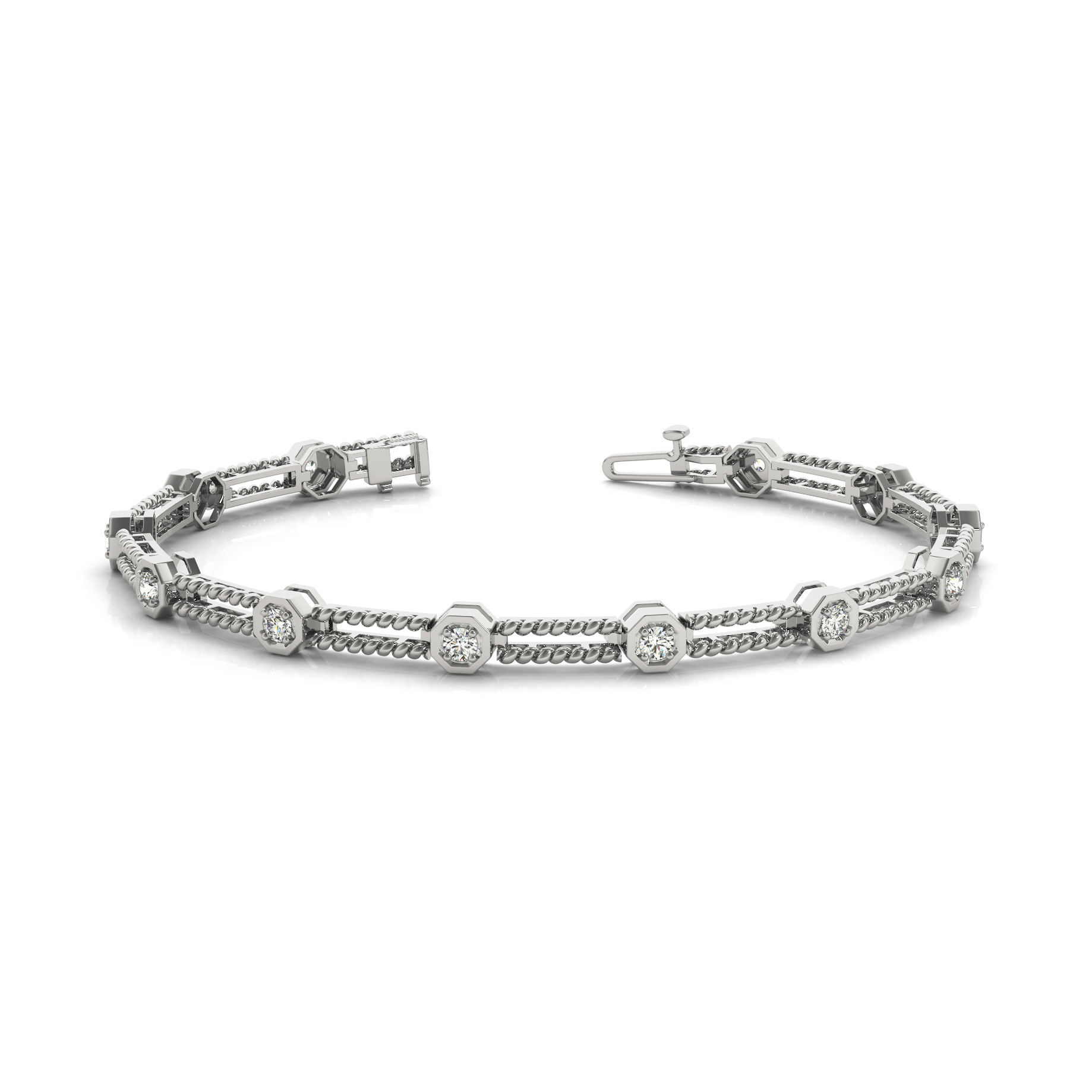 14k White Gold Bracelet with 12 – .02PT Round Stones, equal to 1/4 carats total weight. Can be customized to fit any stone and in any material. Please contact Ronelli Corp for custom orders and modification information, as pricing may vary.
