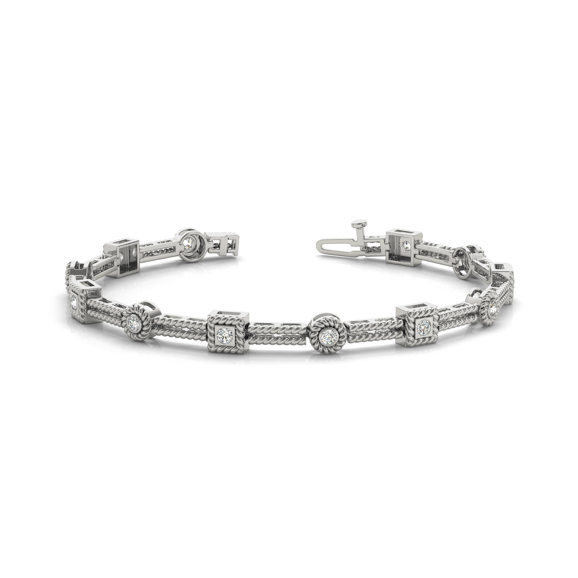 14k White Gold Bracelet with 12 – .035PT Round Stones, equal to 3/8 carats total weight. Can be customized to fit any stone and in any material. Please contact Ronelli Corp for custom orders and modification information, as pricing may vary.