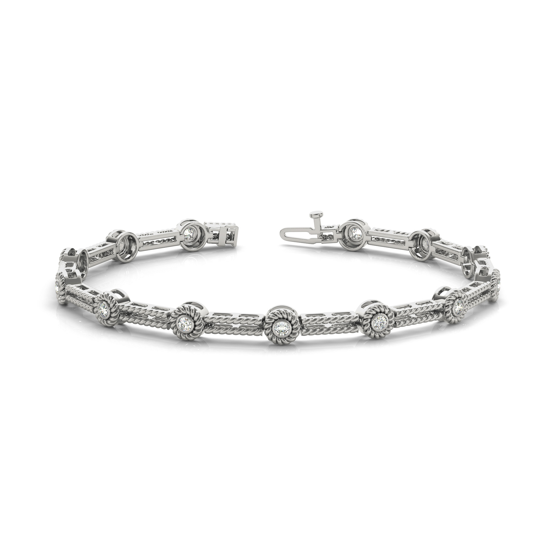 14k White Gold Bracelet with 12 – .02PT Round Stones, equal to 1/4 carats total weight. Can be customized to fit any stone and in any material. Please contact Ronelli Corp for custom orders and modification information, as pricing may vary.