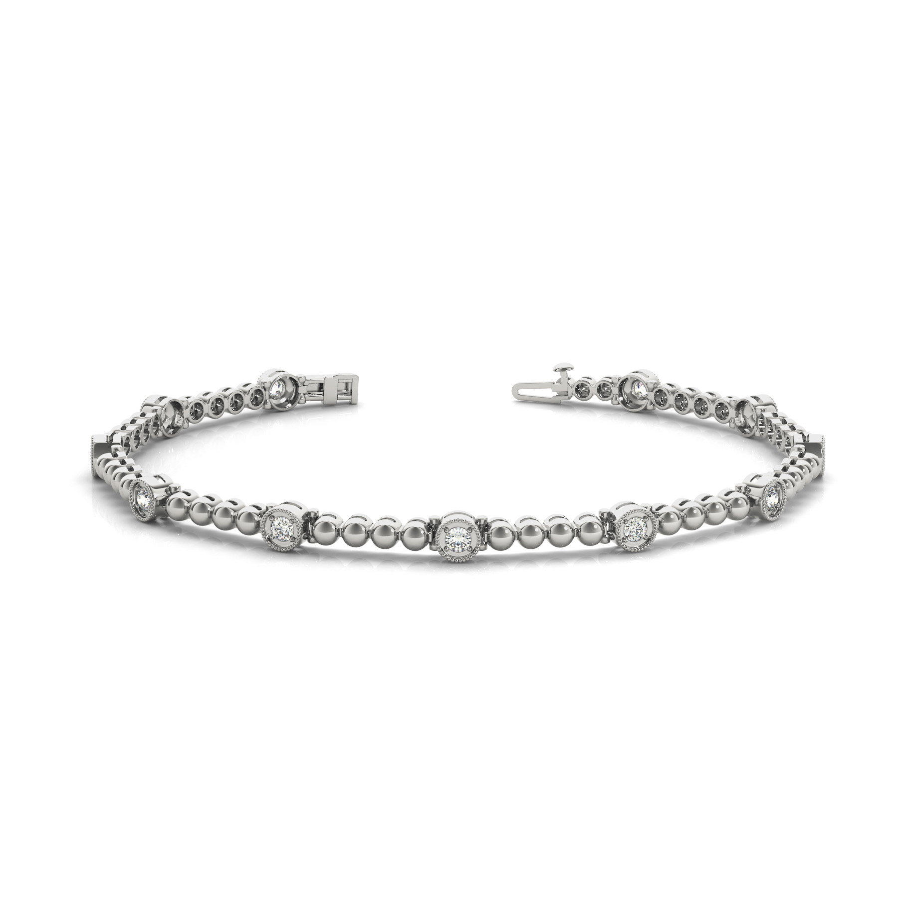 14k White Gold Bracelet with 11 – .02PT Round Stones, equal to 1/5 carats total weight. Can be customized to fit any stone and in any material. Please contact Ronelli Corp for custom orders and modification information, as pricing may vary.