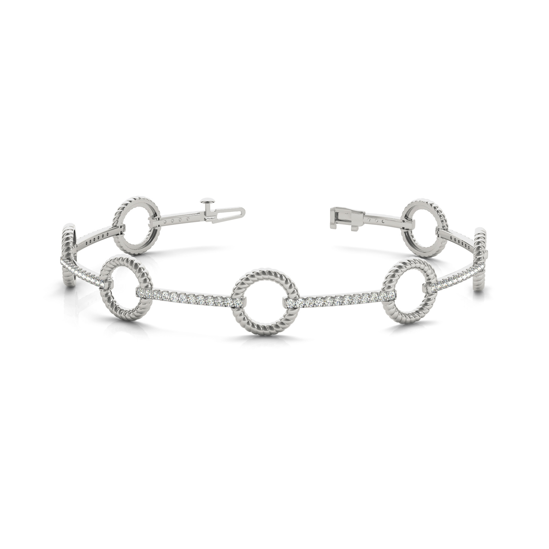 14k White Gold Bracelet with 92 – .01PT Round Stones, equal to 7/8 carats total weight. Can be customized to fit any stone and in any material. Please contact Ronelli Corp for custom orders and modification information, as pricing may vary.