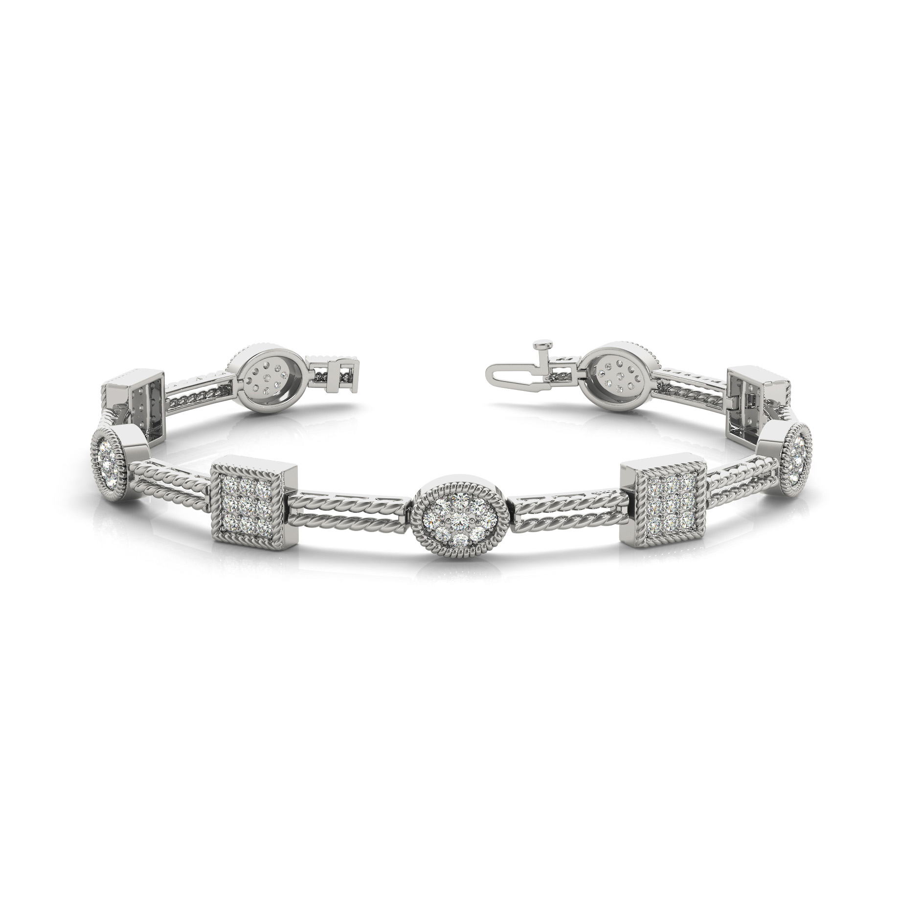 14k White Gold Bracelet with 9 – .02PT Round & 72 – .015PT Round Stones, equal to 1 1/4 carats total weight. Can be customized to fit any stone and in any material. Please contact Ronelli Corp for custom orders and modification information, as pricing may vary.