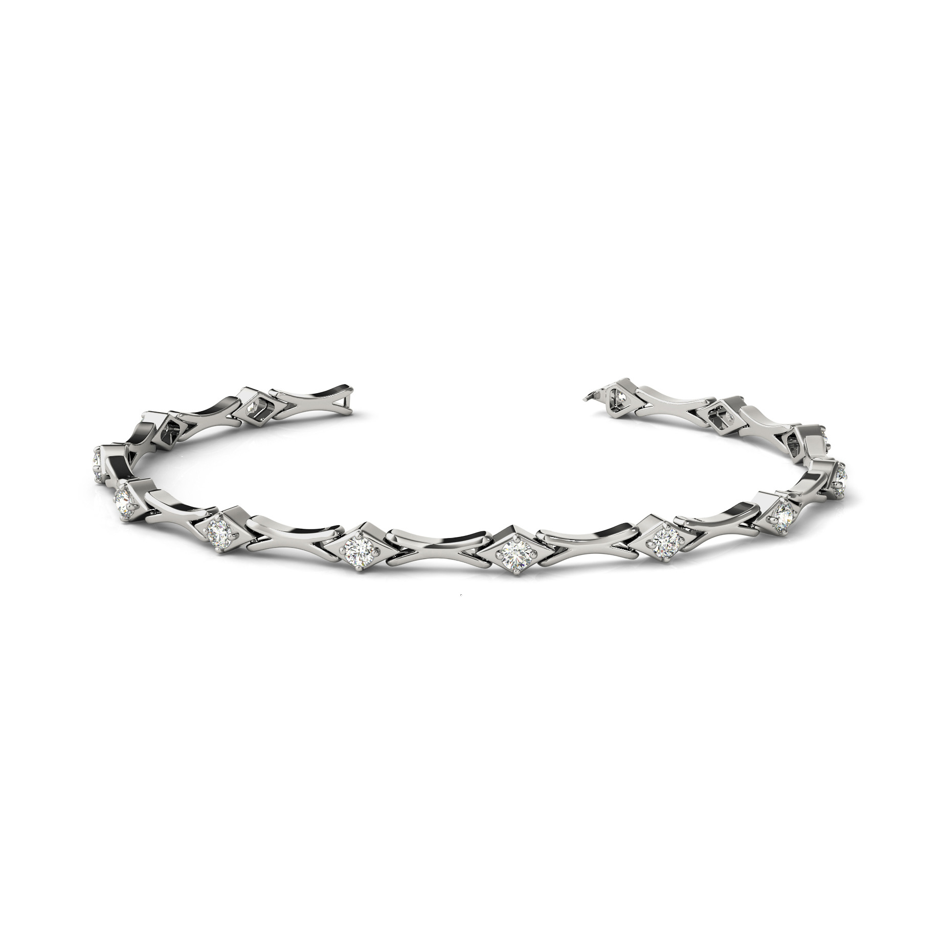 14k White Gold Bracelet with 13 – .07PT Round Stones, equal to 7/8 carats total weight. Can be customized to fit any stone and in any material. Please contact Ronelli Corp for custom orders and modification information, as pricing may vary.