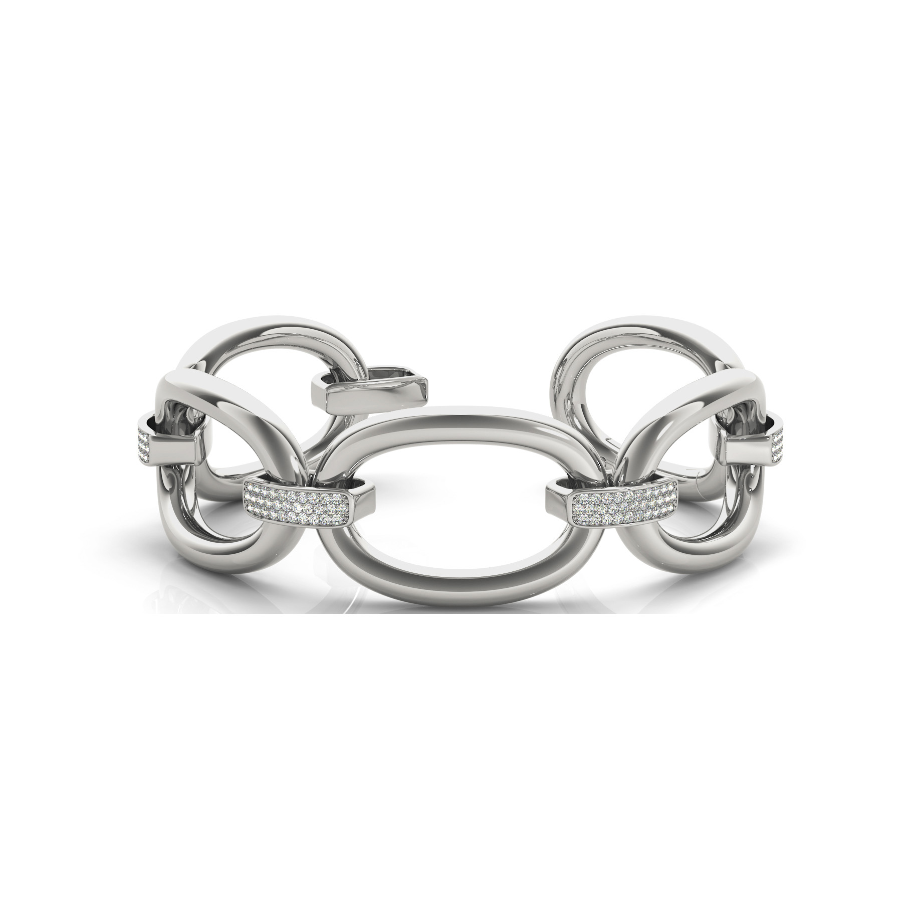 14k White Gold Bracelet with 180 – .0075PT Round Stones, equal to 1 1/3 carats total weight. Can be customized to fit any stone and in any material. Please contact Ronelli Corp for custom orders and modification information, as pricing may vary.