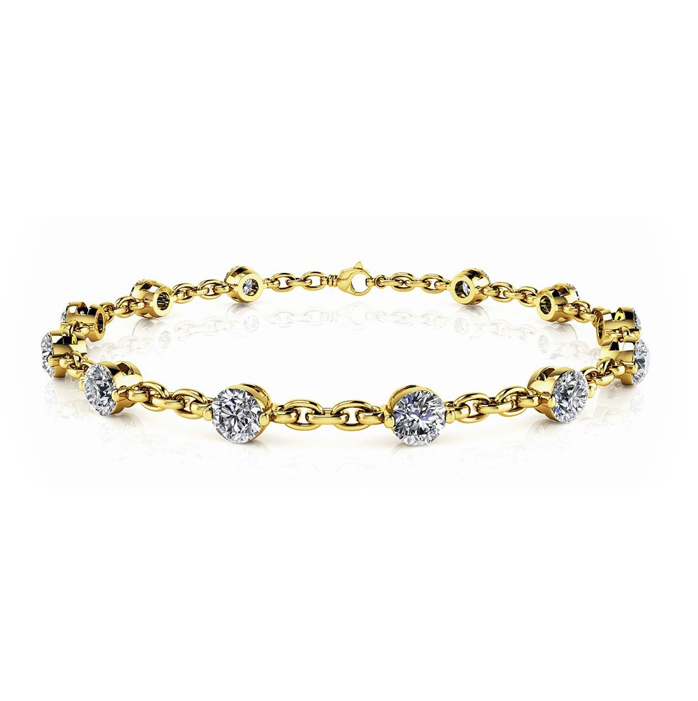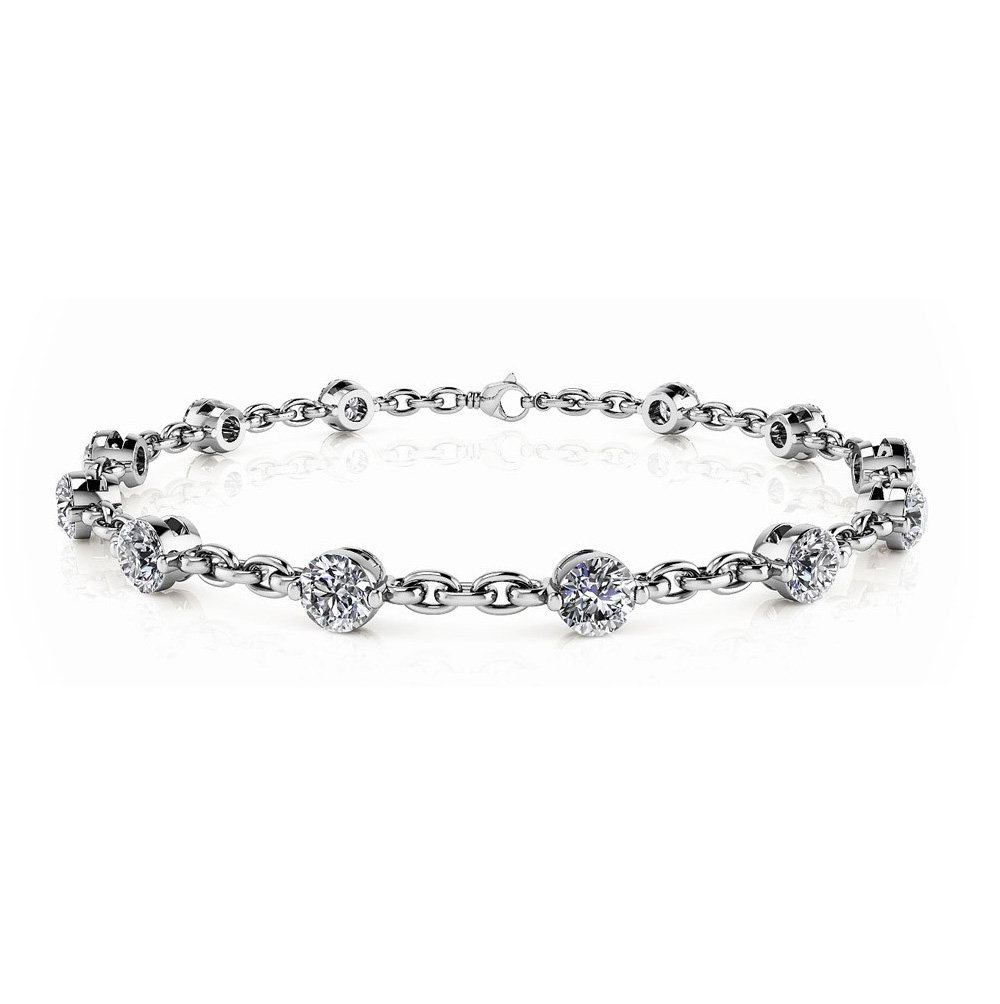 14k White Gold Bracelet with 13 – .16PT Round Stones, equal to 2 carats total weight. Can be customized to fit any stone and in any material. Please contact Ronelli Corp for custom orders and modification information, as pricing may vary.