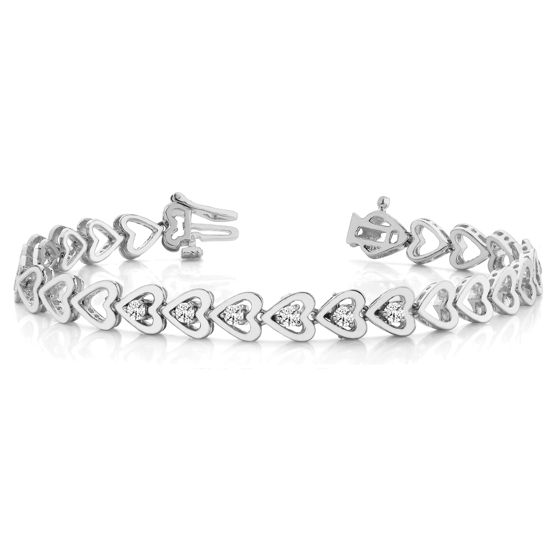 14k White Gold Bracelet with 6 – .04PT Round Stones, equal to 1/4 carats total weight. Can be customized to fit any stone and in any material. Please contact Ronelli Corp for custom orders and modification information, as pricing may vary.