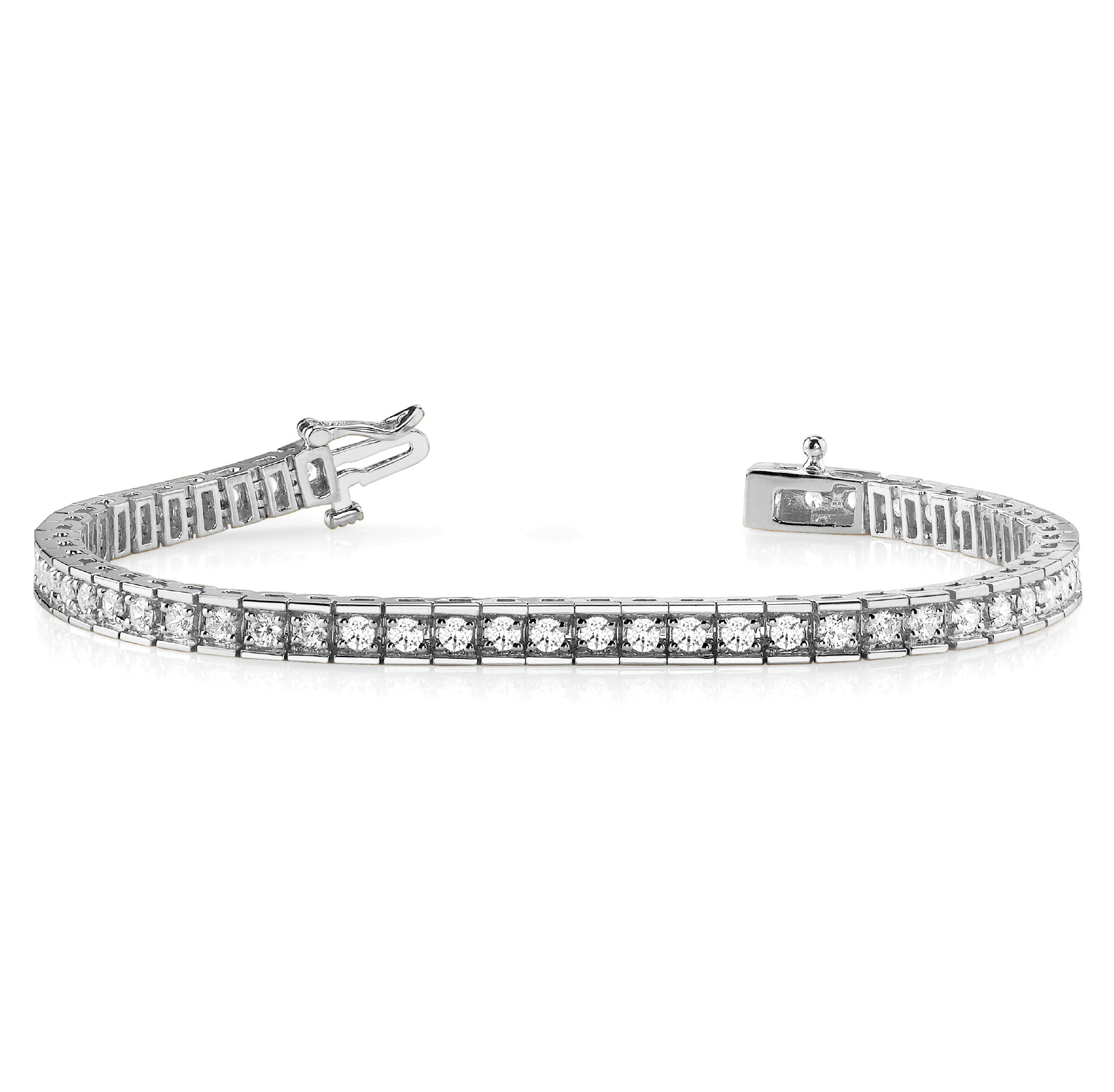 14k White Gold Bracelet with 67 – .033PT Round Stones, equal to 2 1/4 carats total weight. Can be customized to fit any stone and in any material. Please contact Ronelli Corp for custom orders and modification information, as pricing may vary.