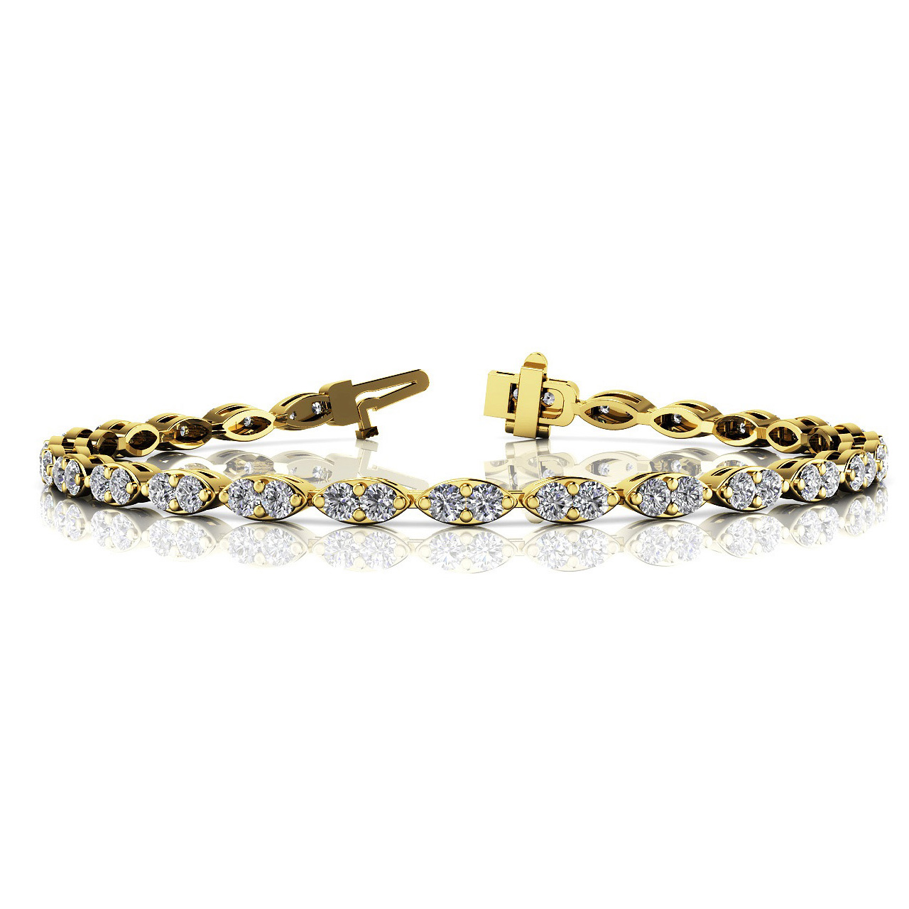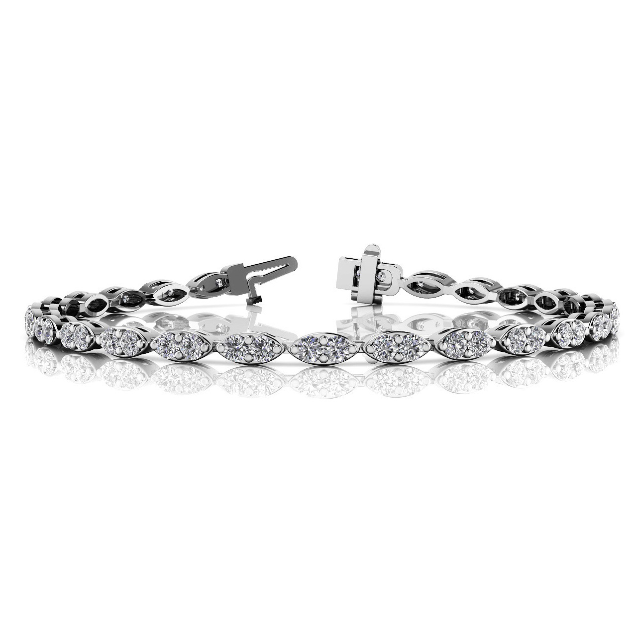 14k White Gold Bracelet with 54 – .06PT Round Stones, equal to 3 1/4 carats total weight. Can be customized to fit any stone and in any material. Please contact Ronelli Corp for custom orders and modification information, as pricing may vary.