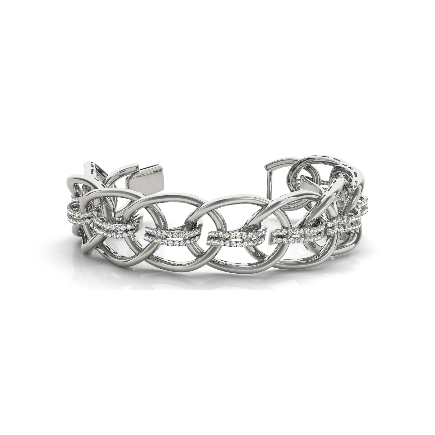 14k White Gold Bracelet with 234 – .015PT Round Stones, equal to 3 1/2 carats total weight. Can be customized to fit any stone and in any material. Please contact Ronelli Corp for custom orders and modification information, as pricing may vary.