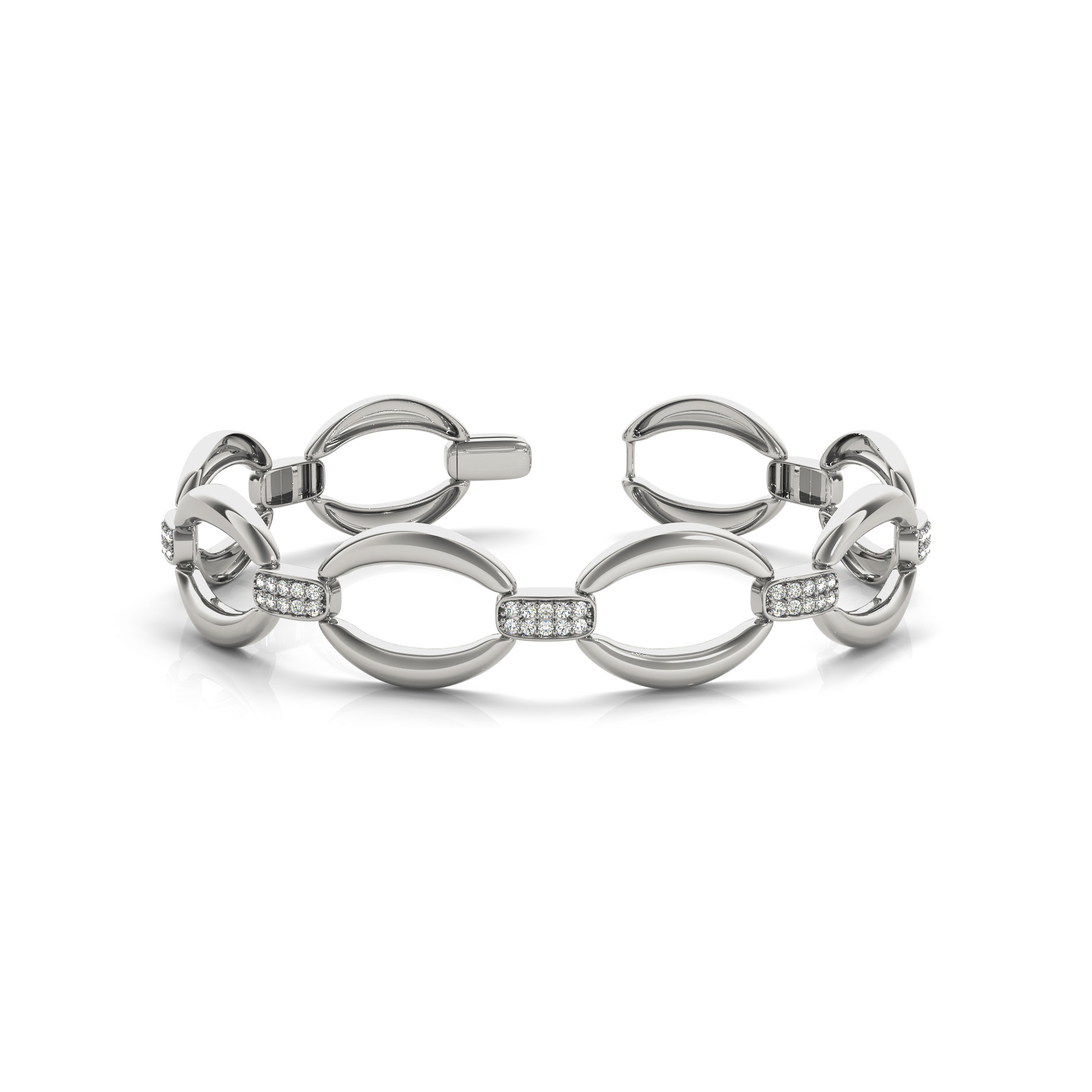 14k White Gold Bracelet with 70 – .015PT Round Stones, equal to 1 carats total weight. Can be customized to fit any stone and in any material. Please contact Ronelli Corp for custom orders and modification information, as pricing may vary.