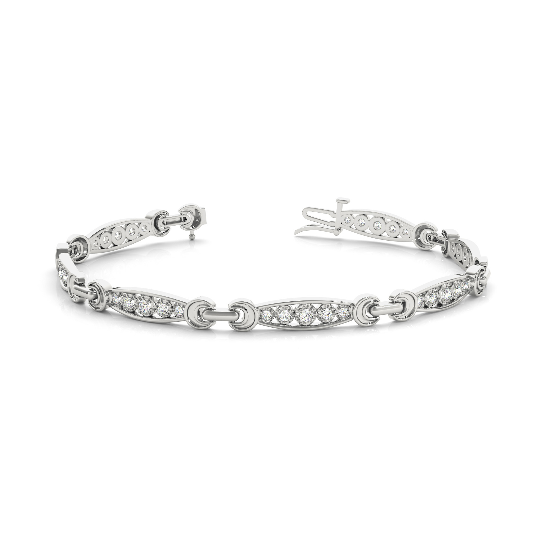 14k White Gold Bracelet with 28 – .01PT Round Stones, equal to 3/8 carats total weight. Can be customized to fit any stone and in any material. Please contact Ronelli Corp for custom orders and modification information, as pricing may vary.