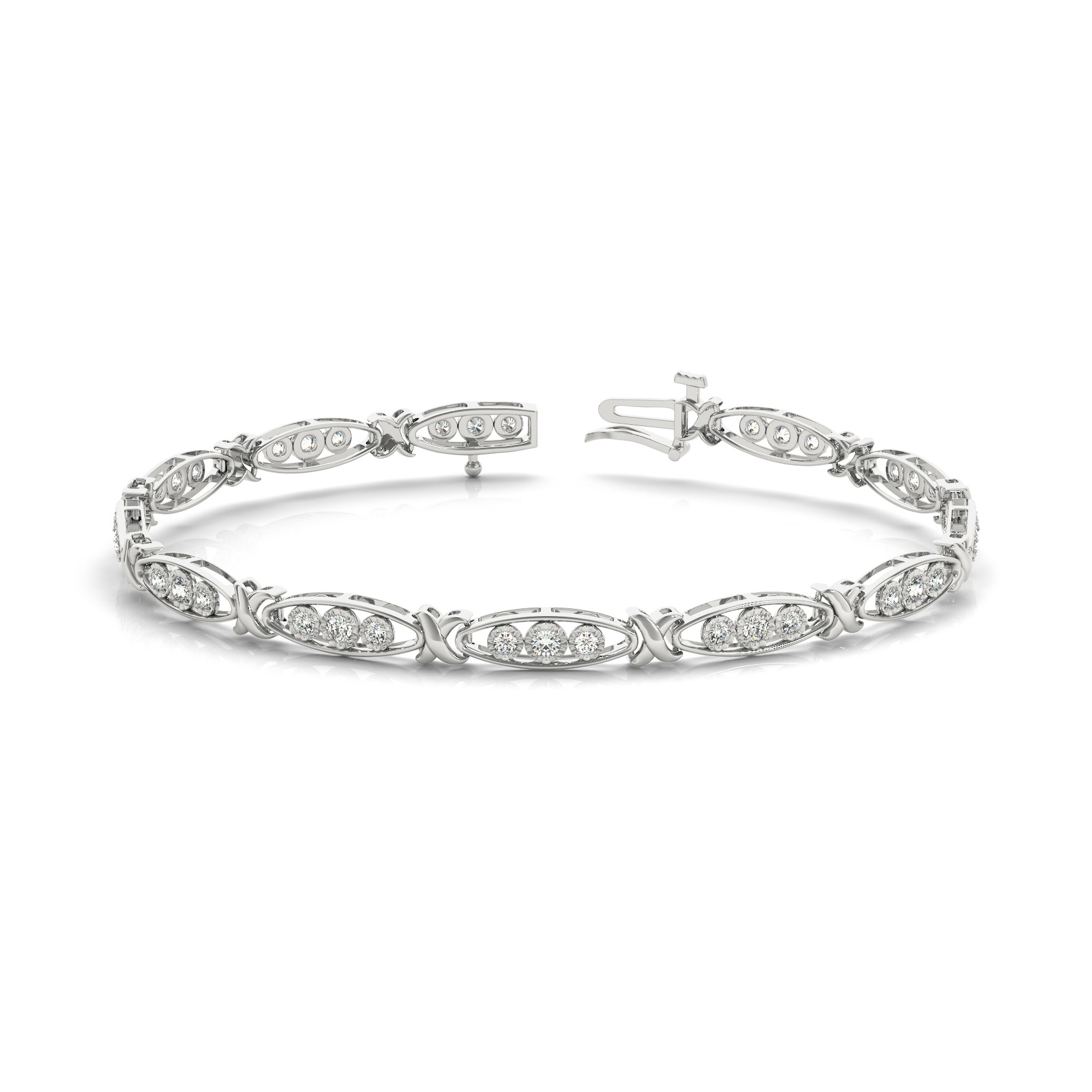 14k White Gold Bracelet with 24 – .015PT Round Stones, equal to 5/8 carats total weight. Can be customized to fit any stone and in any material. Please contact Ronelli Corp for custom orders and modification information, as pricing may vary.