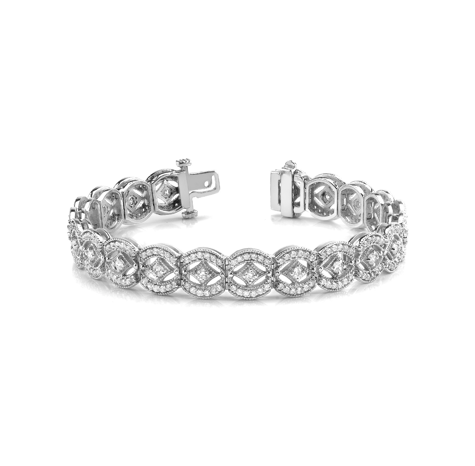 14k White Gold Bracelet with 240 – .012PT Round & 20 – .06PT Round Stones, equal to 4 carats total weight. Can be customized to fit any stone and in any material. Please contact Ronelli Corp for custom orders and modification information, as pricing may vary.