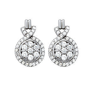 14k White Gold Earring with 7 – .04PT Round & 26 – .0075PT Round Stones, equal to 1 carats total weight. Can be customized to fit any stone and in any material. Please contact Ronelli Corp for custom orders and modification information, as pricing may vary.