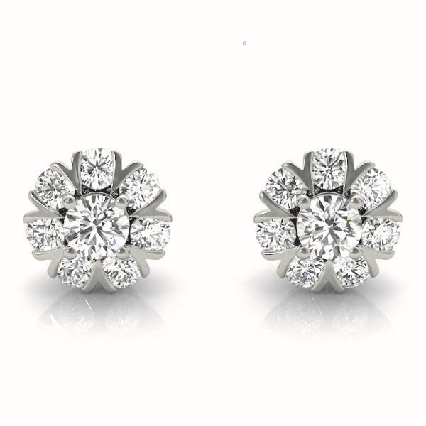 14k White Gold Earring with 7 – .025PT Round & 1 – .075PT Round Stones, equal to 1/2 carats total weight. Can be customized to fit any stone and in any material. Please contact Ronelli Corp for custom orders and modification information, as pricing may vary.