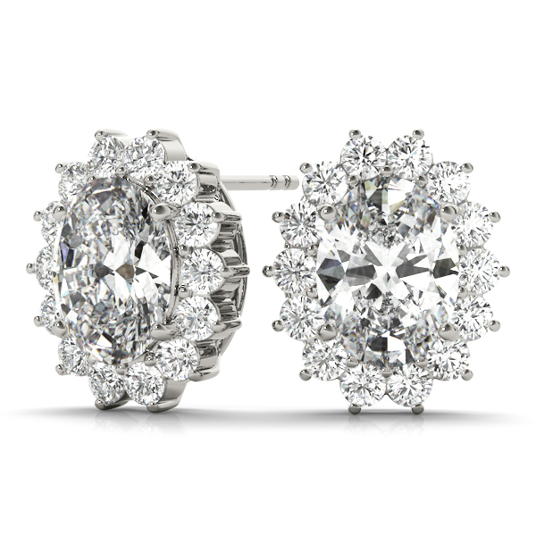14k White Gold Earring with 1 – 10×8 Oval & 14 – .06PT Round Stones, equal to 1 5/8 carats total weight. Can be customized to fit any stone and in any material. Please contact Ronelli Corp for custom orders and modification information, as pricing may vary.