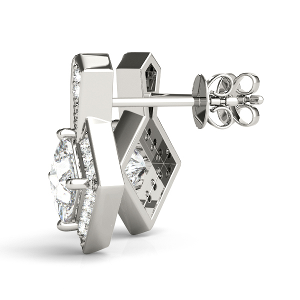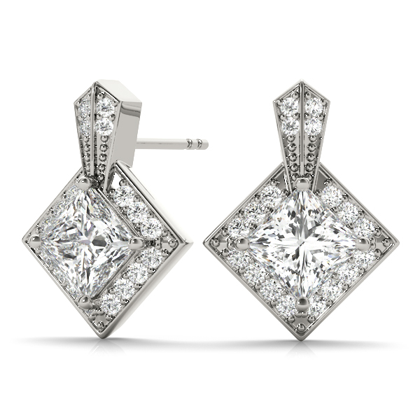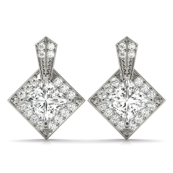 14k White Gold Earring with 1 – 5×5 Square & 18 – .0075PT Round Stones, equal to 2 carats total weight. Can be customized to fit any stone and in any material. Please contact Ronelli Corp for custom orders and modification information, as pricing may vary.