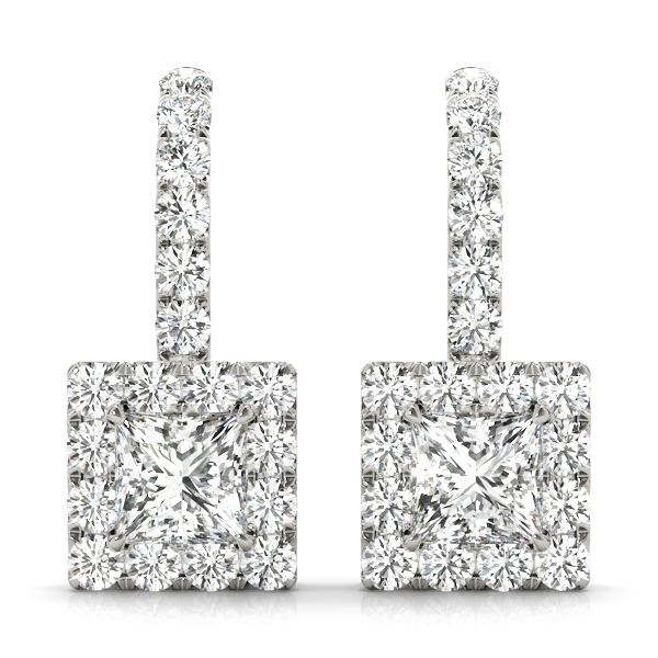 14k White Gold Earring with 1 – 4.5×4.5 Square & 18 – .015PT Round Stones, equal to 1 3/4 carats total weight. Can be customized to fit any stone and in any material. Please contact Ronelli Corp for custom orders and modification information, as pricing may vary.