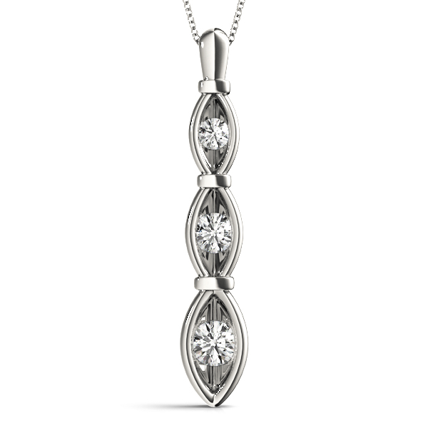 14k White Gold Pendant with 1 – .25PT Round & 1 – .17PT Round & 1 – .08PT Round Stones, equal to 1/2 carats total weight. Can be customized to fit any stone and in any material. Please contact Ronelli Corp for custom orders and modification information, as pricing may vary.