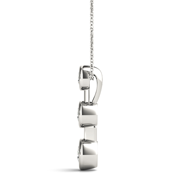 14k White Gold Pendant with 1 – .25PT Round & 1 – .15PT Round & 1 – .1PT Round Stones, equal to 1/2 carats total weight. Can be customized to fit any stone and in any material. Please contact Ronelli Corp for custom orders and modification information, as pricing may vary.